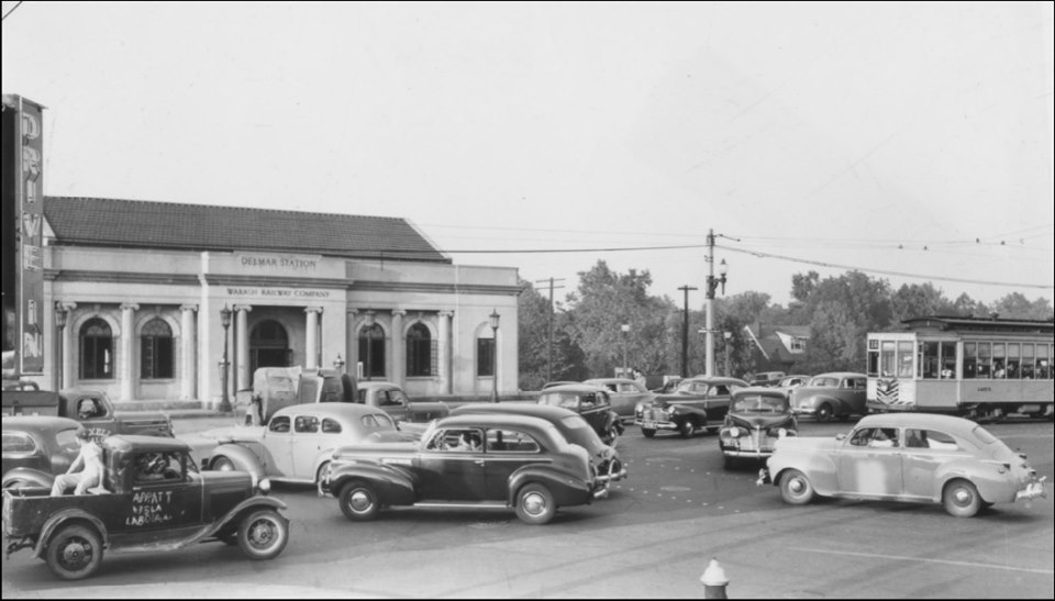 Wabash station on Delmar, where the current Delmar Loop metro station is. Year is 1948?