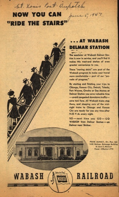 Interestingly, I came across a 1947 ad touting the new escalators at the station. See below.