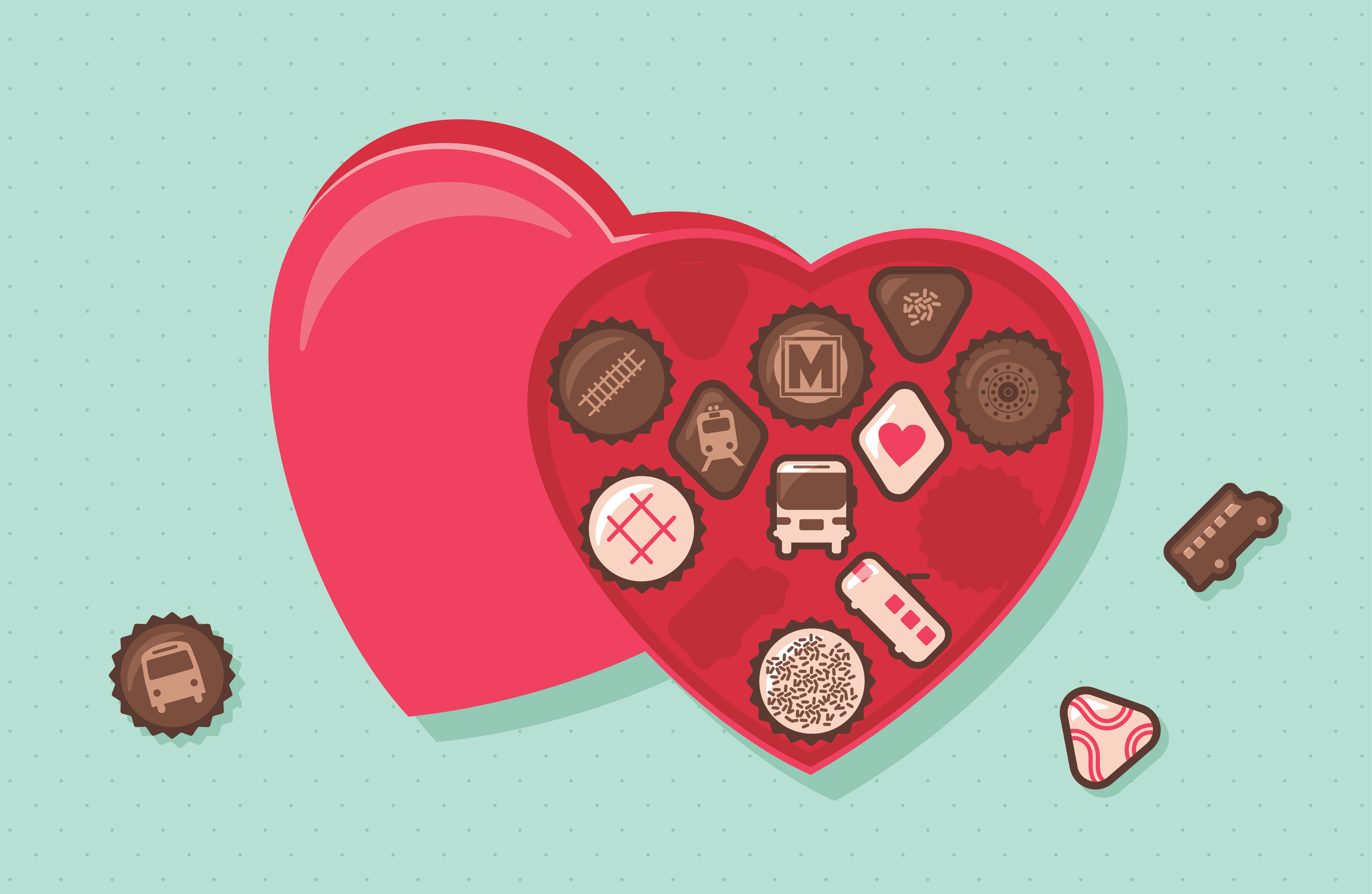 From 6:30 a.m. to 8 a.m. on Thursday, February 14, Metro ambassadors, police officers, Metro Transit security officers and others will be at 14 Metro Transit Centers to greet you and give away Valentine’s Day candy. Your commute may get even sweeter because some of the candy boxes will have a free 2-hour pass, a one-day pass, a weekly or a monthly transit pass attached.